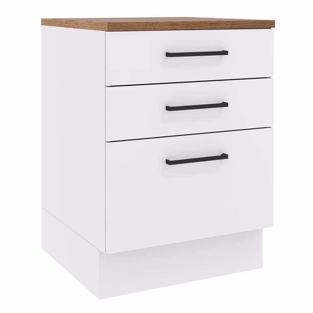 Madesa Hazel Kitchen Storage Base Cabinet with 3 Drawers 23 Inch Wide Engineered Wood Painted Finish Floor Mount Removable Plinth - White